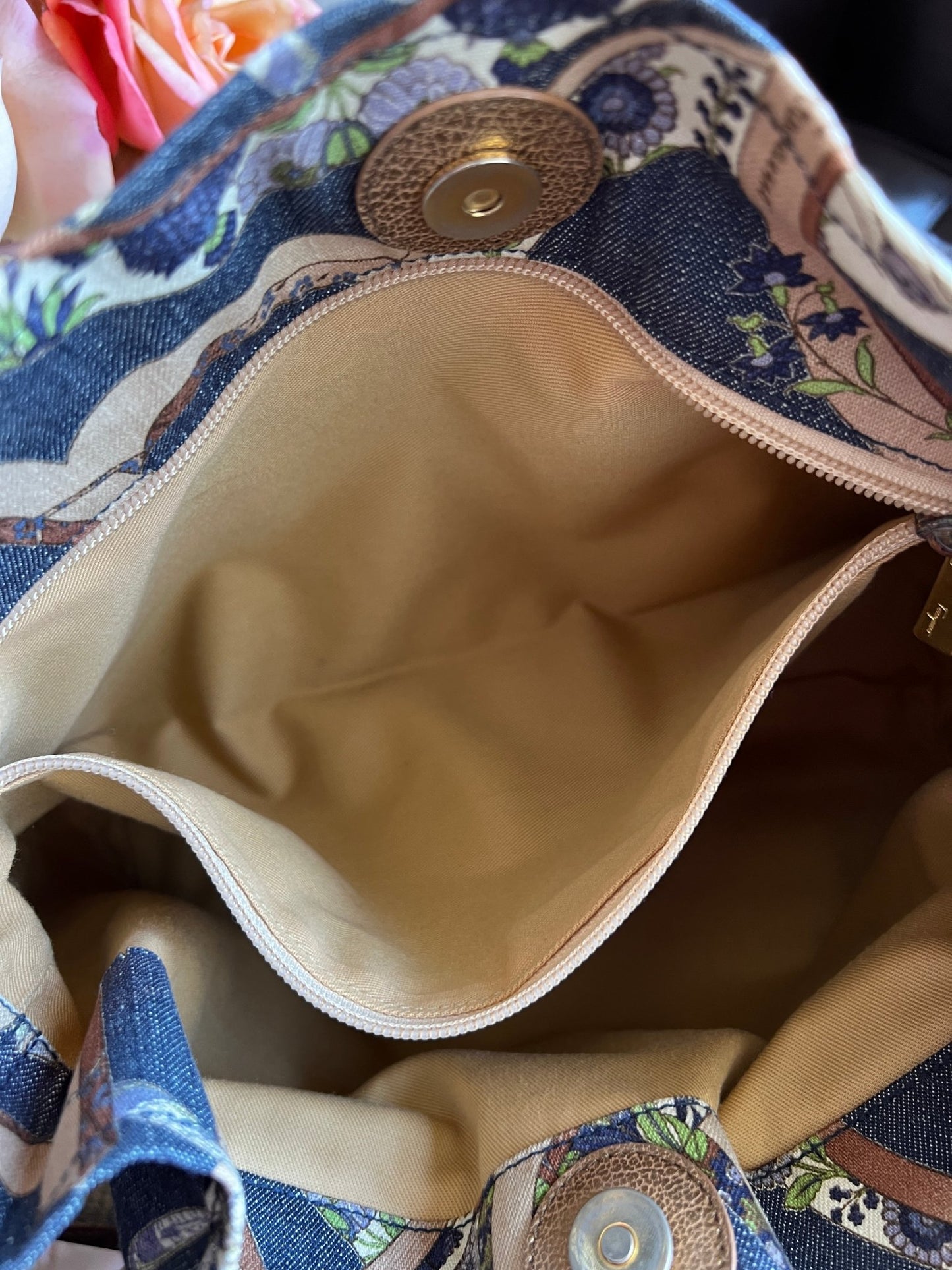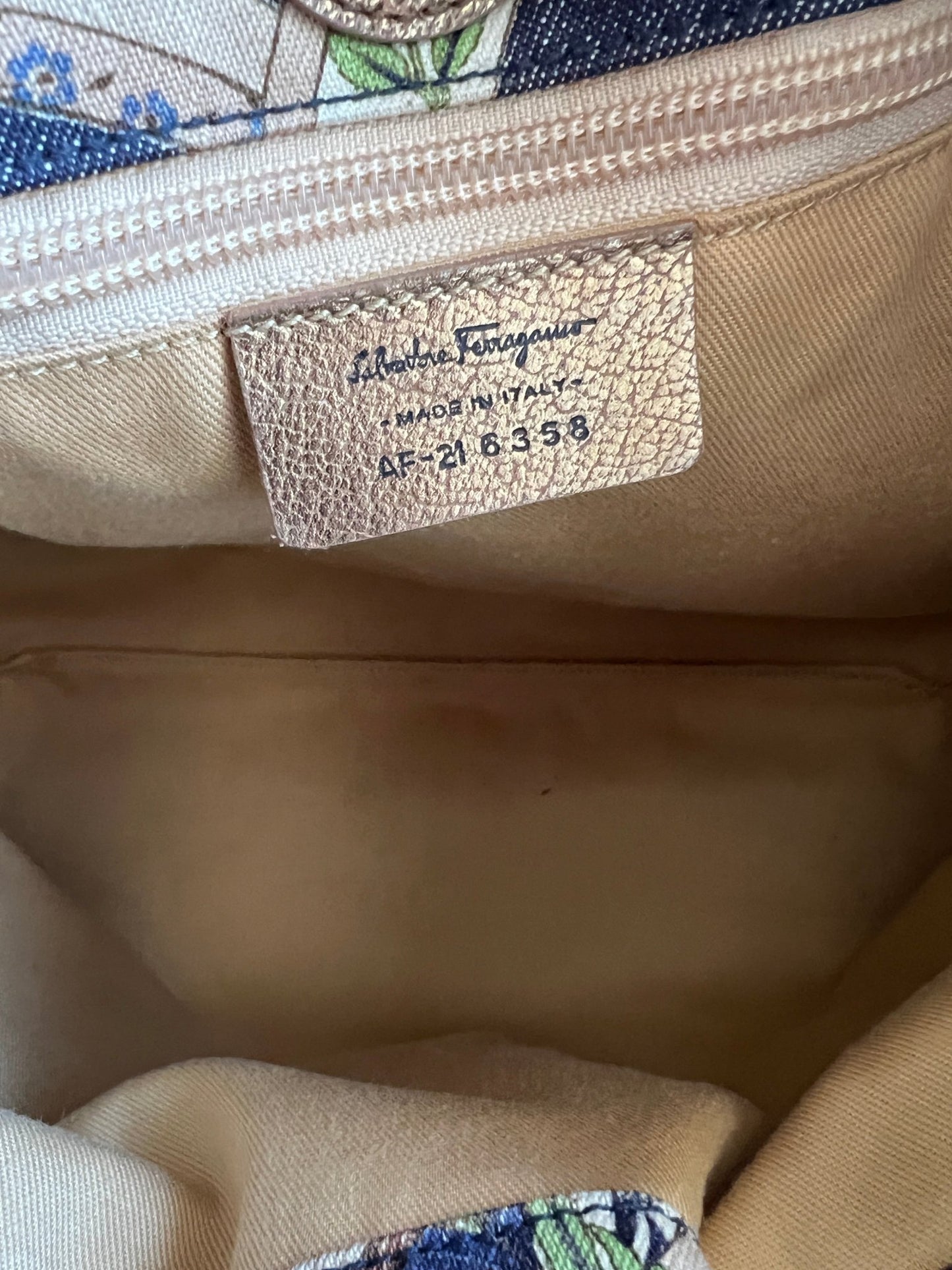 SALVATORE FERRAGAMO Gancini Floral Print Denim Bucket Bag